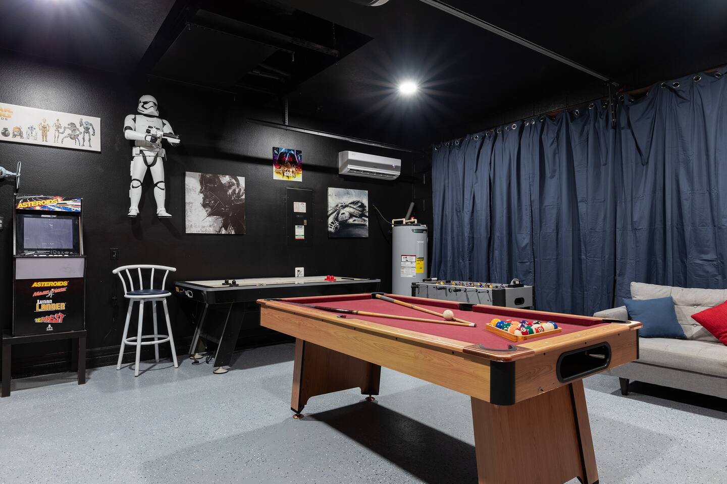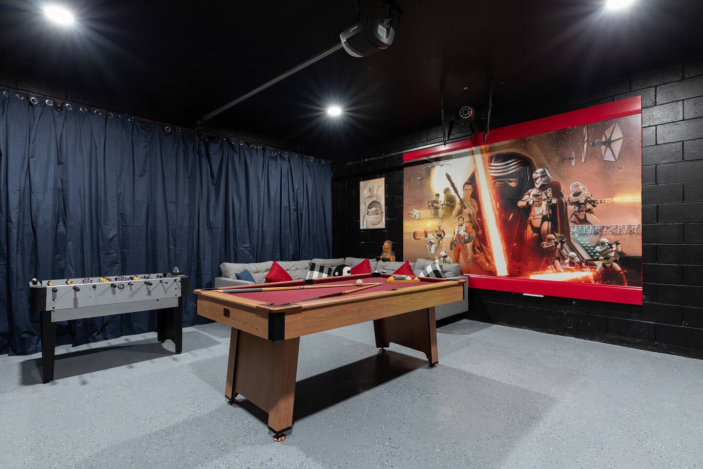 Experience the magic of Orlando in this charming 4-bedroom Disney-themed home. Just 10 minutes from Magic Kingdom, it features a pool and Star Wars game room with pool table and gaming consoles. Enjoy 2 king beds, 1 queen, and a kids' room with bunk beds. Conveniently located near Universal, SeaWorld, shopping, and dining. Professionally managed by an Airbnb Superhost, this family-friendly retreat offers comfort and adventure for your perfect Florida getaway. Your dream vacation starts here!