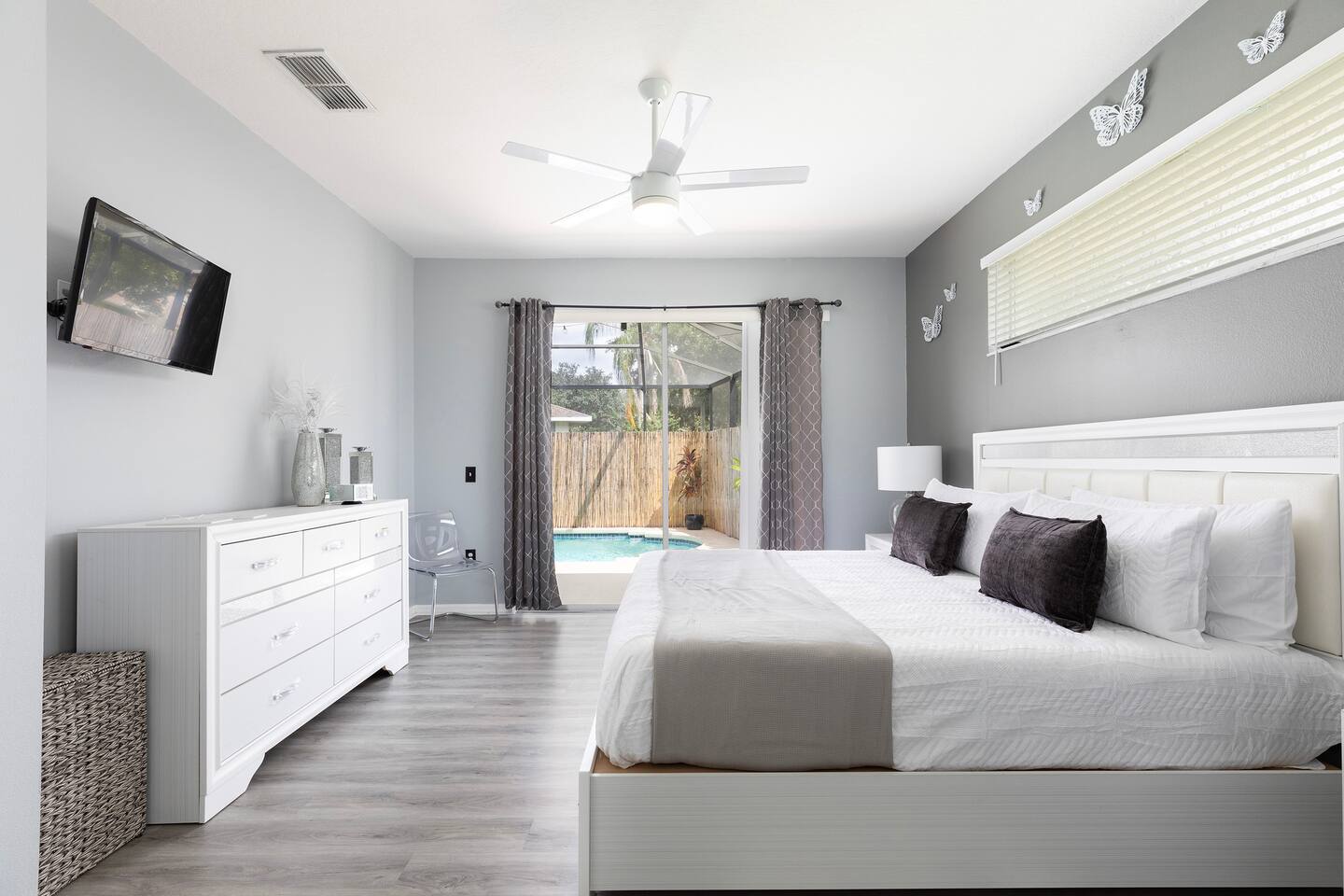 Pool Heating | $35 per day . Please tell us at least a week in advance if you'll need heat. Pool heat is only offered for the entire length of your stay not for specific days. BBQ Grill - If you would like to rent a BBQ grill during your stay, you can do through a local rental company. You can schedule drop-off and pick-up directly with them. We will provide you with a link. Pet Fee: A pet fee of $80 per stay applies for one pet, or $100 for two pets. We welcome small dogs and cats only, and pets must be non-shedding and fully house-trained. We cannot accommodate any pets that shed or are not properly house-broken. Additional cleaning fees will be charged for any extra cleaning required due to pets, and guests will be responsible for any pet-related damage to the property. These fees and charges will be assessed and added to your final bill.